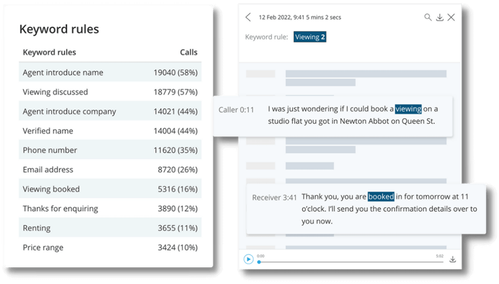 - Automatically screen transcribed call recordings for quality or compliance issues.