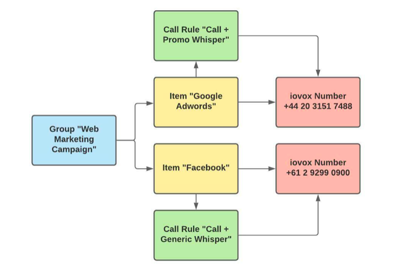 Groups and Items allow you to define and organise everything related to your iovox Numbers and Analytics.